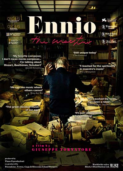 Ennio, el maestro es un homenaje de admiración y amistad al músico más popular y más querido por el público internacional, autor de más de 500 bandas sonoras inolvidables, Ennio Morricone (1928-2020). Giuseppe Tornatore, el gran cineasta italiano -¿quién no recuerda con emoción su oscarizada película Cinema Paradiso (1987), con música de los Morricone, padre e hijo, Ennio y Andrea?- firma este hermoso documental, que deleita y conmueve, por momentos hasta las lágrimas, aunque siempre con la sonrisa en los labios.