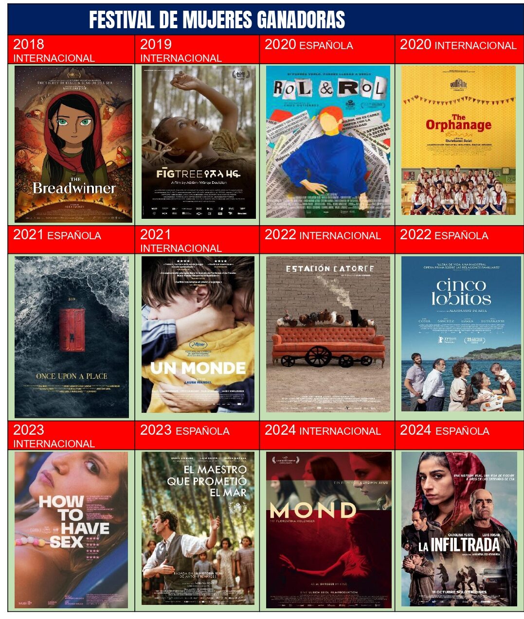 Destacar que entre las 100 mejores películas del 2024, 25 son de la temática de mujeres y, de estas, 9 de casos reales o biográficas. Historias extraordinarias como Aún estoy aquí, Cabrini, La joven y el mar, El destino de Maya, La virgen roja, Soy Nevenka, La semilla de la higuera sagrada, y la polémica Emilia Pérez, que tanto ha gustado, o el récord de taquilla de Casa en flames y La infiltrada. Si se tuviera que elegir cuál ha sido la mejor película de mujeres, sería casi imposible, pero cuatro destacan por ser historias extraordinarias y de mujeres extraordinarias: Cabrini, La infiltrada, La joven y el mar y Aún estoy aquí. La gran noticia es que nos llega un año mas el festival de cine por mujeres de Madrid.