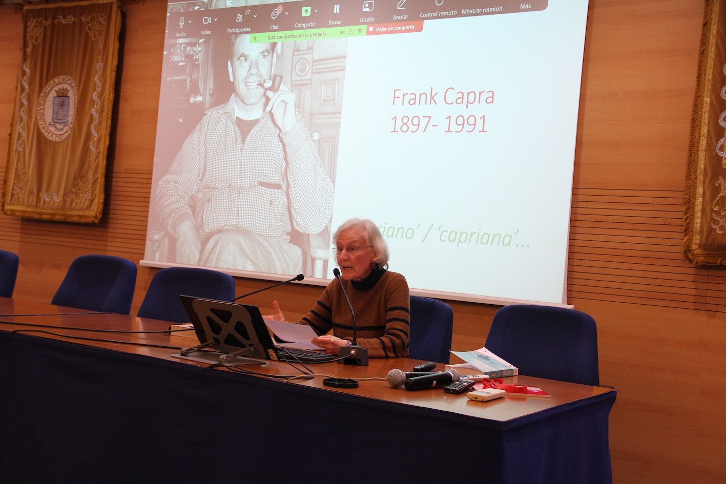 Con entusiasmo contagioso, la profesora Ninfa Watt comenzó acercándonos la figura de Frank Capra, un cineasta que convirtió su fe en el hombre en magníficas películas en las que la decencia humana siempre tenía el papel protagonista. Hasta tal punto que su cine –nos explicó– ha dado lugar al adjetivo ‘capriano’, para referirse a historias o personas que rezuman optimismo, bondad y buenos sentimientos, aun en momentos de dificultades.