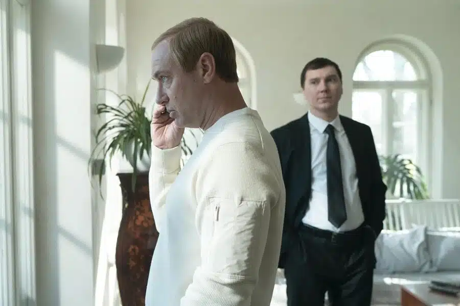 En el plano personal, la actriz Ksenia se enamora del protagonista, mientras este entabla amistad con un poderoso banquero. El dinero y el poder ejercen una atracción irresistible, casi magnética. Ella abandona a su pareja para unirse al banquero; sin embargo, cuando el llamado “Mago del Kremlin” deja de gravitar en su órbita, regresa junto a él. La relación con el poder es adictiva, afirma el personaje interpretado por Paul Dano en una de las frases más contundentes del filme, y la película lo retrata con precisión quirúrgica: desde el propio Putin hasta sus colaboradores y los multimillonarios que orbitan a su alrededor, todos viven bajo la lógica de la lealtad absoluta; quien no está dentro del sistema corre el riesgo de ser apartado… o algo peor.