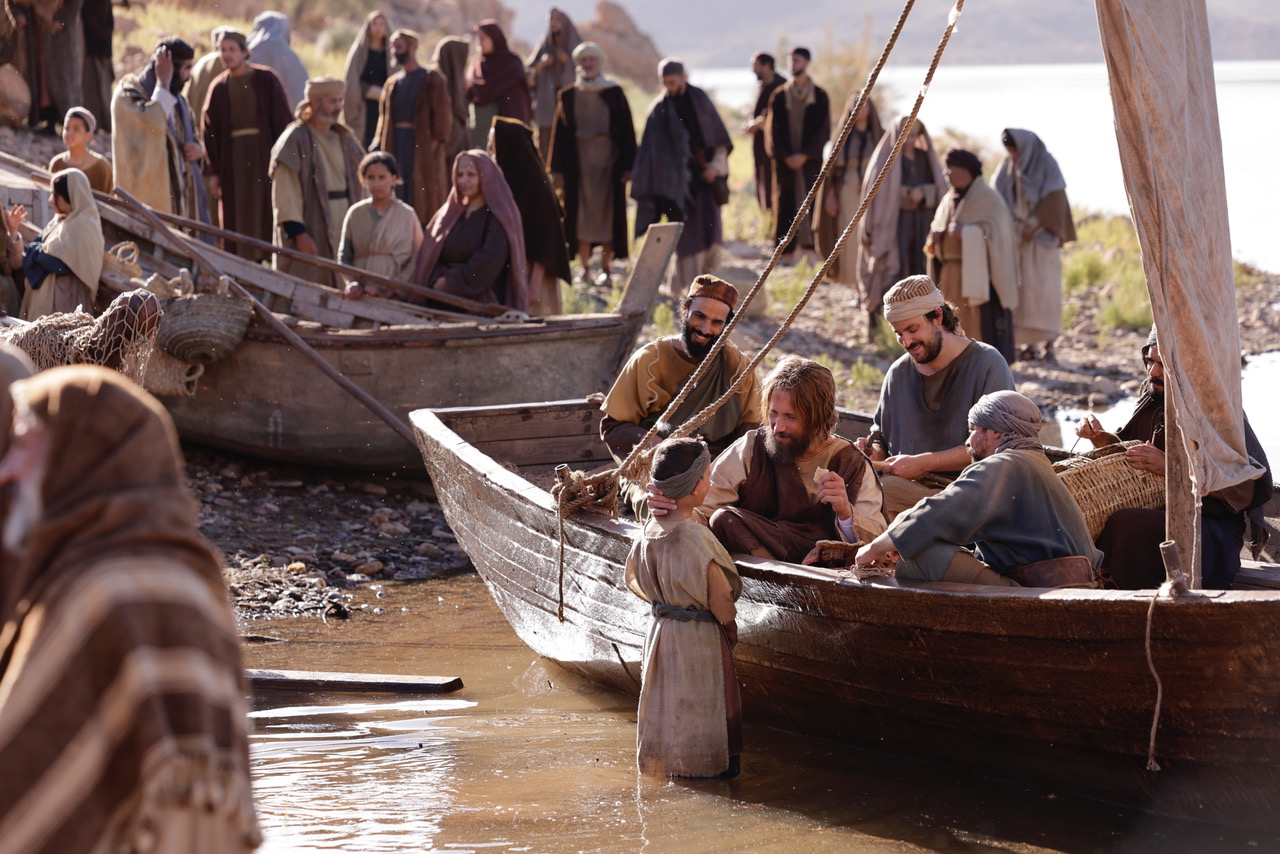 El narrador es Pedro, que se compara con una piedra afilada que ha necesitado ser suavizada. La película empieza y termina en el lago de Galilea, comiendo panes y peces en ambos casos. Al inicio, un niño aporta unos pocos panes y peces. Jesús, que acaba de hacer un milagro «effetá» con un niño sordomudo a la vista de todos, multiplica los alimentos.