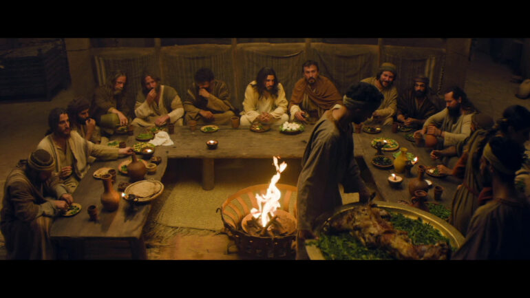 La película pone en contraste dos últimas cenas. En el patio de abajo, la familia que acoge a Jesús se reúne para una Pascua judía normal. Entre ellos está María Magdalena. Es una familia entrañable con niños y adolescentes que incluso enseñan con orgullo su cocina a Jesús. Es una buena invitación: ¡todos deberíamos dejar que Jesús entrara en nuestra cocina!